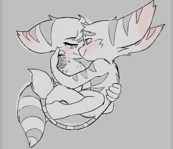 He then goes and plants a small peck on her forehead, making her giggle a bit before she lifts her head up a bit more, accidentally brushing their noses against each other, but they both chuckle as they instead embrace it, rubbing each other’s noses with joyful smiles before she leans in and plants a kiss on his lips, Ratchet returning it warmly as they both squeeze each other in their arms even tighter, Ratchet making sure to grip onto her naked, scarred side, rubbing it with just as much tender affection as the rest of her back, sending an electric thrill right through her as pure bliss overcomes the both of them.