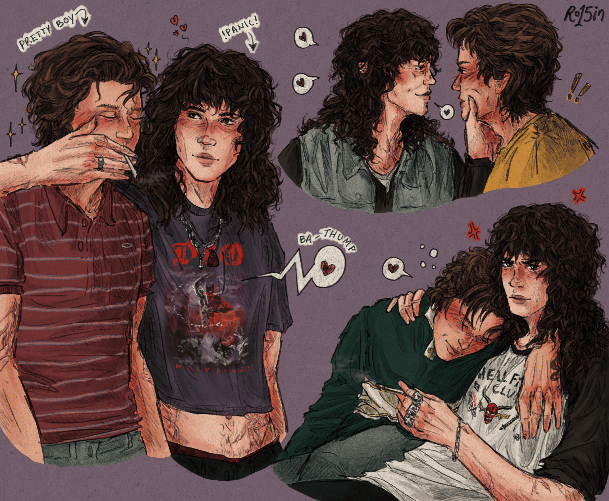 His mouth- the way he smirks, his full lips quirking up whenever he’s teasing Dustin. The way they purse softly around a cigarette- sometimes sharing one with Eddie. Indirect kisses.